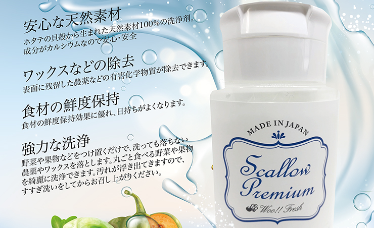 「スカロープレミアム」は、ホタテ貝殻や卵殻を独自技術で焼成・微粉砕化技術により、高純度な水酸化カルシウム(Ca(OH)₂)に変化させた天然抗菌素材です。細菌やウイルス、臭気分子を分解・不活化。アルコールや塩素を使用せず、人にも環境にも優しい除菌力を実現しています。